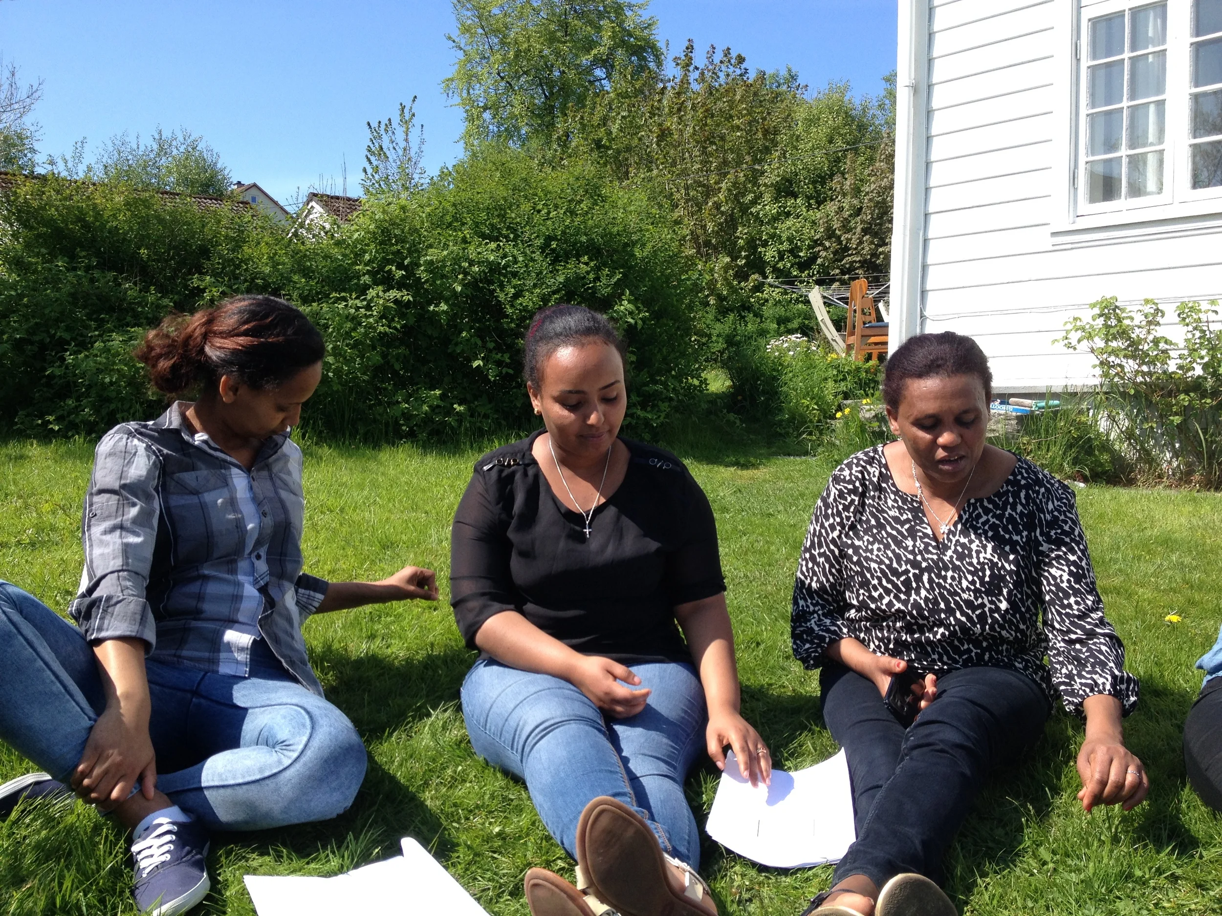 Sangøvelsene har blitt holdt hjemme hos kultursjefen, som har ledet øvelsene med de eritreiske kvinnene. To av kvinnene har hatt med seg barna sine av og til, og takket være fint vær har gruppa ofte kunnet sitte ute i hagen og øve. Sanggruppa har også hatt besøk av praksisstudenter, som har vært på utplassering for å lære om hvordan man jobber med flyktninger og frivillighet i kommunen. Dette ble også en lærerik sangtime for studentene, som bare kunne én av de norske vuggesangene fra før.